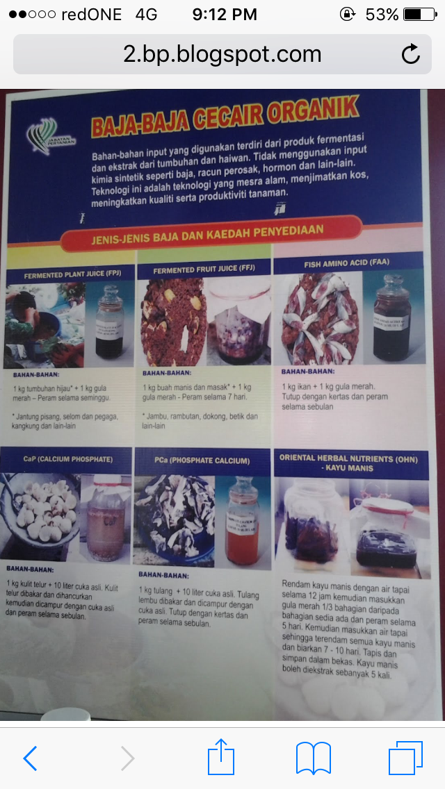Di bawah ini adalah Panduan membuat baja organik dari Jabatan Pertanian di kongsi dari blog salwatinisa.blogspot.com