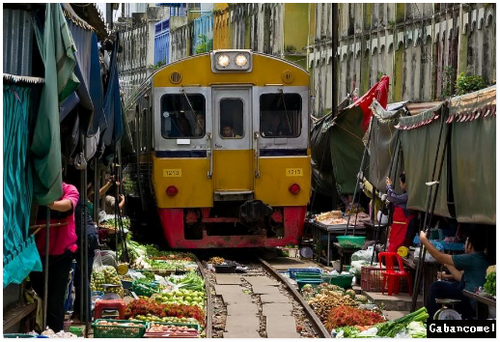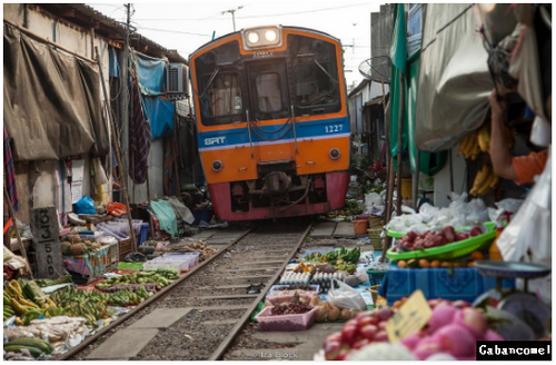 Dimanakah letak pasartani paling berbahaya di dunia? Maeklong Market di Thailand adalah jawapannya. Pasaran Maeklong ini lokasinya benar-benar berada diatas landasan kereta api yang dillalui oleh kereta api paling tidak lapan kali dalam sehari!