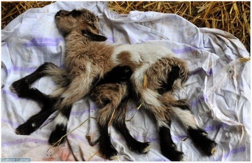 Keanehan memang bahagian dari misteri dunia yang akan terus berlaku . Seperti yang berlaku di Croatia . Seekor anak kambing yang baru lahir ternyata mempunyai 8 kaki . Meskipun demikian kambing yang lahir di ladang ini dalam keadaan sihat . Pemilik kambing , Zoran Paparic , menyatakan anak kambingnya juga mempunyai 2 organ pembiakan iaitu jantan dan betina sekaligus selain berkaki 8 .