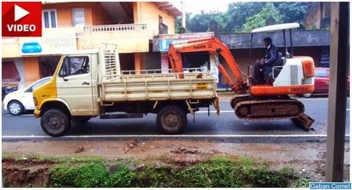 Sebuah excavator mini di India dapat masuk ke dalam lori pick-up dengan cara yang unik. Pemandu excavator itu sepertinya sudah terbiasa melakukan perkara unik tersebut.