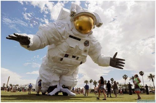 Patung angkasawan bersaiz raksasa ini boleh dijumpai di festival muzik dan seni Coachella tahun ini. Patung angkasawan setinggi 10 meter ini dibuat oleh syarikat yang berpusat di Los Angeles, Poetic Kinetic Inc.