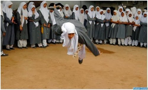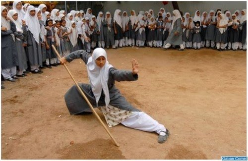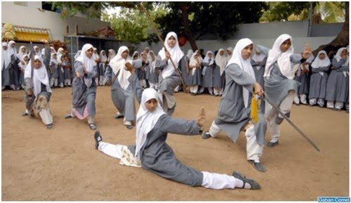 Sekolah muslimah islam dari pengajian tinggi Maaz di india mengamalkan, wushu seni mempertahankan diri di dalam kawasan sekolah di bandar selatan india Hyderbad .Muslimah dari umur 10-16 mengambil bahagian dalam sesi mingguan semasa sesi persekolahan.