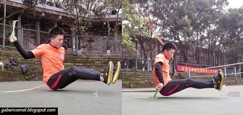 Inilah aksi Yi Zhihua bermain skipping dengan punggung: