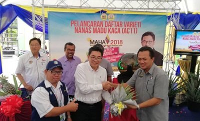 NANAS MADU KACA (AC11) telah berjaya dilancarkan oleh Timbalan Menteri Pertanian dan Industri Asas Tani YB Sim Tze Tzin sempena Festival MAHA 2018 di Laman Nanas, Serdang, Selangor pada 30 November 2018. Nanas varieti Madu Kaca asalnya diberikan nama sebagai Nanas Sarawak di Kelantan sebelum Ketua Pengarah LPNM Dato’ Hj Mohd Anim membuat lawatan kebeberapa petani yang menanam dan memounyai kebun nanas di Rantau Panjang, Kelantan dan mendapati nanas ini boleh didaftarkan sebagai varieti baru pada bulan Mac 2018. Kemudian kerja-kerja membuat permohonan untuk proses pendaftaran nanas ini dilakukan beberapa bulan kemudian sebelum ianya berjaya didaftarkan sebagai Nanas MADU KACA dengan nombor pendaftaran sebagai AC 11. Nanas (Ananas comosus) merupakan sejenis buah yang penting di Malaysia kerana ia mampu dalam memberikan pendapatan agak lumayan berbanding dengan beberapa jenis komoditi tanaman lain. Tanaman nanas yang dipercayai berasal daripada bahagian Timur Amerika Selatan ini dibawa masuk oleh penjajah Portugis ke Malaysia pada abad ke 16 dan merupakan tanaman buah tropika yang sesuai dimajukan di Malaysia. Dalam sejarah, Malaysia merupakan sebuah negara utama didalam industri nanas dunia dimana pernah menjadi pengeksport nanas kaleng (nanas dalam tin) yang tersohot dahulu. Beberapa negara lain yang juga terlibat dalam industri nanas dunia seperti Filipina, Indonesia, Thailand, Hawaii, Ivory Coast, Costa Rica, Kenya, Brazil, Taiwan, Australia, India dan Afrika Selatan. Selaras dengan perkembangan tanaman getah, pada tahun 1921 nanas mula ditanam di Singapura, Johor dan Selangor sebagai tanaman kontan. Di Johor tanaman nanas banyak ditumpukan diatas tanah gambut dimana kini negeri Johor merupakan penyumbang utaman sektor tanaman nanas sebnyak 68% daripada keluasan seluruh negara. Artikel malam ini saya menulis dalam blog “Anim Agro Technology” mengenai pelancaran varieti nanas baru iaitu nanas MADU KACA sebagai satu lagi pilihan kepada penanam nanas di Malaysia.