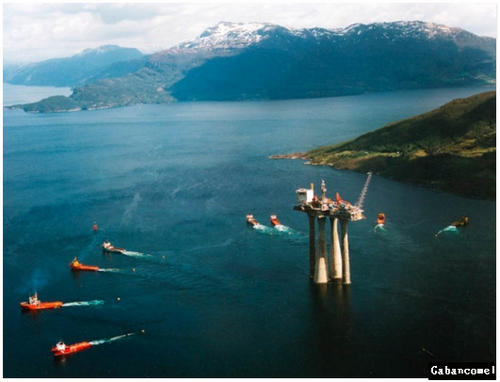 Biasanya kaki platform diangkut di sebelahnya dan kemudian – disokong oleh peranti pengapungan. Dalam hal Troll A, bagaimanapun, seluruh platform telah dipasang di satu lokasi, dan kemudian terapung ke laut. Platform Troll dilukis lebih 200 kilometer, di bahagian utara Rogaland, di barat laut Bergen. Tunda mengambil dalam masa tujuh hari.