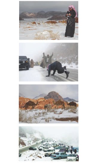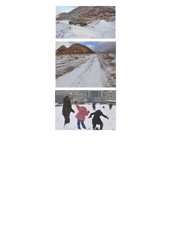 Penduduk Tabuk dan juga orang-orang yang datang dari daerah lain menikmati hujan salji yang jarang terjadi itu. Jalan-jalan terutama menuju ke Gunung Alluz dipenuhi oleh kenderaan bermotor. Jalan-jalan yang mengarah ke daerah gurun pasir dan pengunungan di Tabuk dipenuhi kenderaan dari arah kota Haql dan Bada.