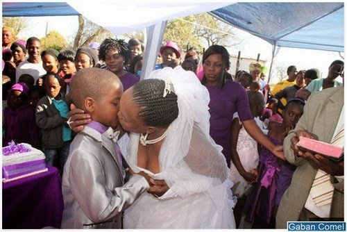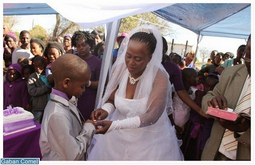 Dengan berpakaian tuxedo, Sanele menggengam tangan ibu lima anak, Helen Shabangu, ketika mereka mengulangi ikrar perkahwinan yang dibuat tahun lalu di depan 100 tetamu. Murid sekolah itu berkata, dia mengadakan majlis itu sekali lagi kerana mahu menjadikan perkahwinannya rasmi.