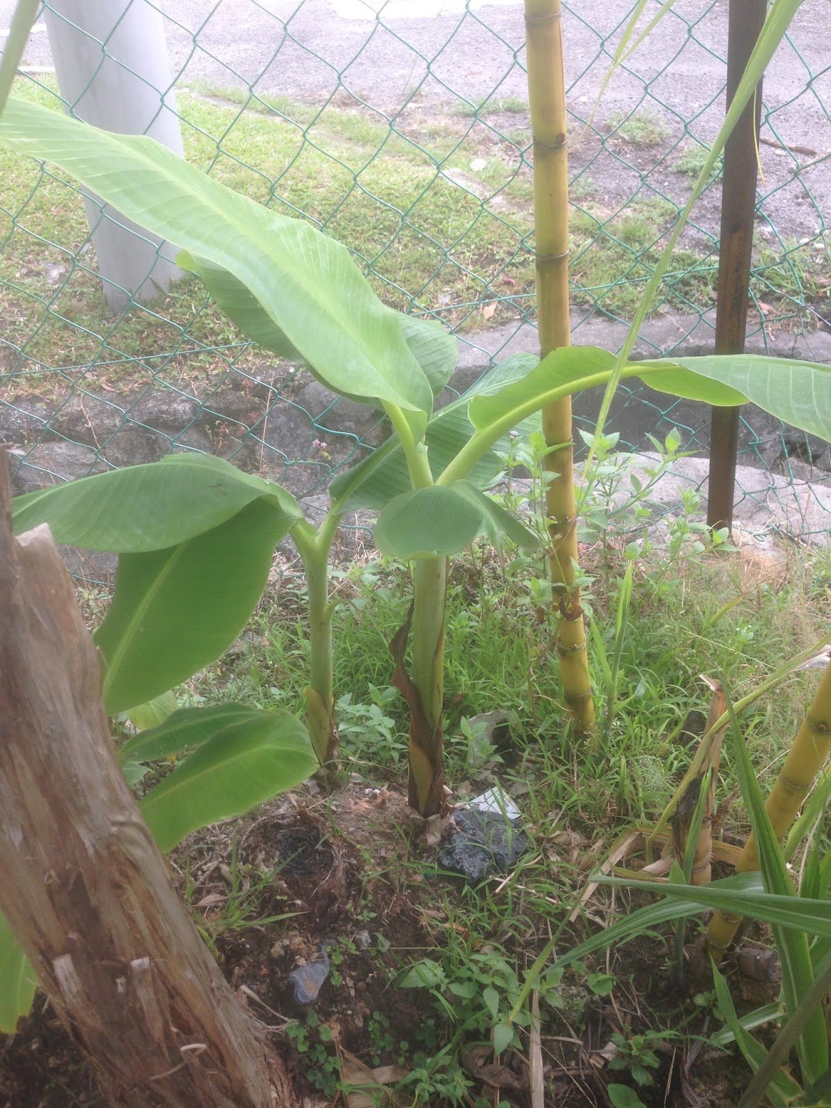Sulur air, anak pokok pisang nangka, daunnya lebar dan besar manakala batangnya kurus