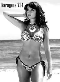 Di salah satu poster iklannya, wanita muda ini tampil dengan pose menggoda, berbaring di atas pasir pantai dalam balutan bikini berbordir. Di tepi poster tertulis, “Cantik, independen, dan kompeten.”