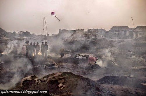 Jharia dan perkampungan Bokapahari, di negara bahagian Jharkhand, terletak dalam salah satu kawasan arang batu terbesar di India. Arang batu penting bagi ekonomi India kerana lebih daripada 70% bekalan elektrik di negara itu berasal dari batu arang. Tapi untuk 90,000 orang yang tinggal di sekitar Jharia, tidak ada manfaatnya. Kebakaran arang batu mengamuk di bawah permukaan tanah dan gas beracun termuntahkan dari celah di dalam dan sekitar rumah.