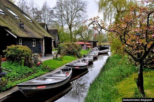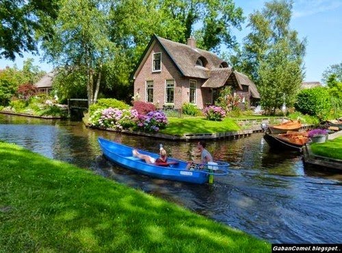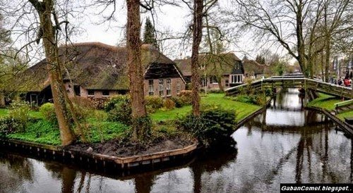 Sebuah perkampungan yang unik yang ada di Belanda ini. Tidak seperti kampung-kampung yang pernah kita kenal yang umumnya padat dengan jalan raya,perkampungan kecil bernama Giethoorn ini tidak mempunyai jalan raya. Hampir seluruh kawasannya dikelilingi oleh sungai-sungai kecil.