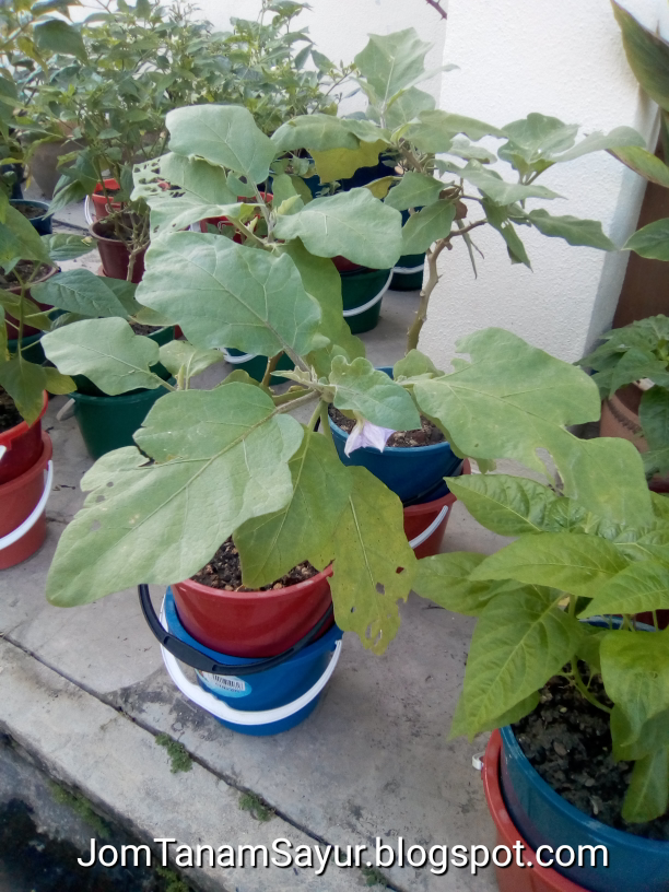 Pokok terung yang dipindahkan juga menunjukkan perkembangan positif. Ini semua menunjukkan bahawa kaedah NutriPot Ringkas ini memang berjaya.