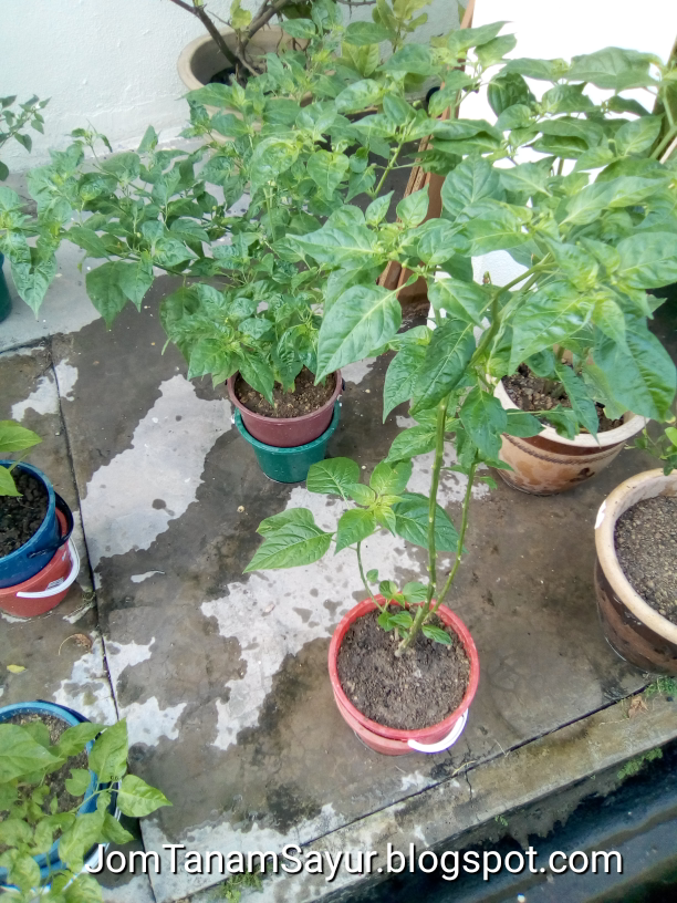 Setakat ini pokok kelihatan sihat malah ini kali pertama dapat menanam pokok cili dengan baik, sebelum ini selalu menghadapi masalah kelayuan, daun kerinting, hasil kurang / tiada hasil dan pelbagai masalah lagi.