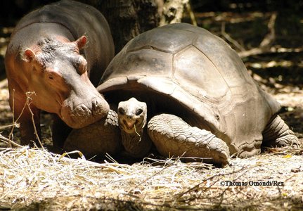 Mzee, adalah spesies kura-kura Aldabran usia 130 tahun seberat 700 pound (320 kg). Mzee yang dalam bahasa Swahili (Afrika) berarti “wise old man” (si tua bijaksana), merupakan penghuni lama area yang dilengkapi dengan kolam asri dan hutan buatan itu.