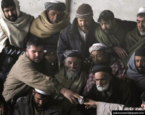 Segelintir penduduk begitu asyik menyaksikan pertandingan sabung burung puyuh di Kabul, Afghanistan .