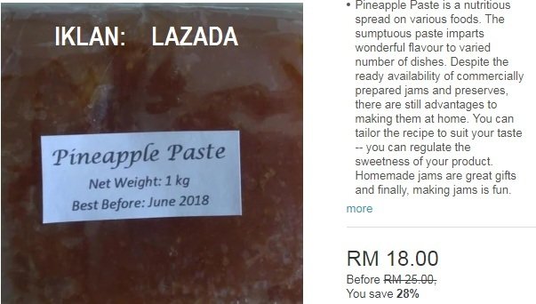 Penulis baru-baru ini telah berpeluang membuat ‘Uji Rasa Kuih Tart’ yang mana ia menggunakan pes atau inti nanas sebagai komponen utama (Sila lihat foto disebelah). Terdapat lebih daripada 25 sampel yang dihantar oleh ramai pengusaha dari seluruh negara untuk dipilih beberapa kuih tart terbaik untuk dijadikan produk berasaskan nanas yang popular. Kualiti inti tart nanas merupakan satu kriteria untuk mementukan kuit tart mana yang paling diminati ramai dan boleh dijadikan ikon makanan Negeri Johor. Melihat kepada inti kuih tart tersebut ia mampu menarik pembeli untuk memilikinya dengan sekali pandang sahaja. Selain itu inti tersebut dimestikan tidak terlalu manis dan mudah untuk diperolehi dengan harga berpatutan. Produk daripada pes nanas ini boleh dibungkus, dilabel dan dieksport sebagai satu komoditi makanan yang sangat penting. Dalam iklan diinternet menunjukkan pes nanas yang diimport dari Thailand adalalah sangat manis oelh beberapa orang dengan pegawai lain. Bungusan 1 kg pen nanas dijual dengan harga RM25.00 tetapi jika ada promosi ia menurun kepada RM18.00 sekilogram. Lazada ada mengiklankan ‘Pineapple Paste’ dalam laman sesawang yang mmana ada mempromosikan produk pes nanas. Semuga pembaca semua mendapat info terbaik dari blog anim agro technology kali ini. Wasallam!!!.BUAH NANAS…PELBAGAI GUNA…