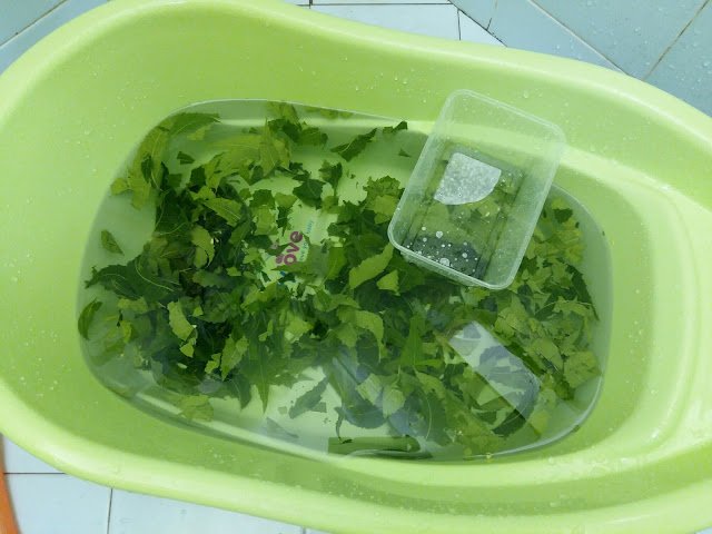 3. Ramas segenggam daun melur sehingga hancur bersama semangkuk air. Sapukan dari kepala sehingga ke hujung kaki anak anda. Ulangi 2 hingga 3 kali sehari.