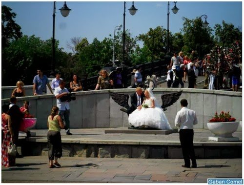 Di Rusia , pasangan pengantin baru biasanya pergi menuju ke sebuah jambatan untuk melakukan wedding kiss di hari perkahwinan mereka . Jambatan ini diberi nama The Bridge of Kisses . The Bridge of Kisses terletak di berhampiran Katedral Kristus Juru Selamat , di atas Sungai Moskva . Jadi , selepas melakukan pemberkatan pernikahan , para pasangan pengantin baru ini beramai-ramai menuju ke jambatan cinta ini .