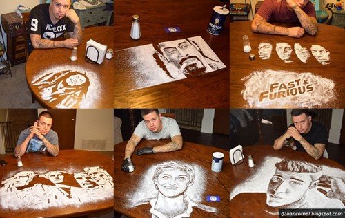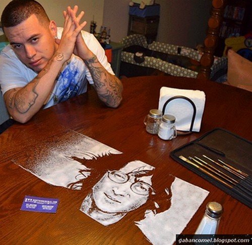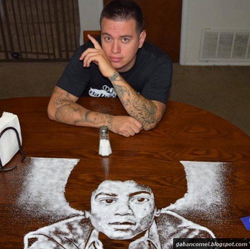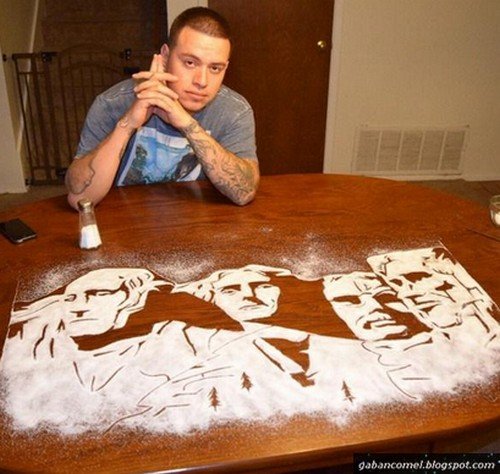 Salah satunya seperti yang dilakukan oleh seorang lelaki berasal dari San Antonio bernama Rob Ferrel ini. Lelaki ini boleh membuat pelbagai lukisan tokoh terkenal hanya dengan menggunakan garam.