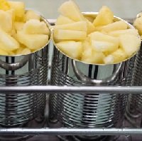 Pada umumnya teknologi untuk proses mengkaleng buah nanas adalah serupa teknologinya cuma bergantug kepada saiz industri. Membuat buah nanas dalam kaleng perlukan bahan utama iaitu buah nanas segar dari ladang, gula, air dan juga peralatan seperti bekas jars (balang kaca) atau kaleng (plain tin cans), pisau tajam jenis ‘stainless steel’, alatan ‘retort’ atau pemanas, penutup kaleng (double seamer) dan dapur gas. Kepada usahawan kecil-kecilan dan tradisional membuat nanas kaleng mudah jika dilakukan dengan memilih buah nanas segar. Buah yang digunakan harus cukup matang. Buah nanas yang masih berwarna hijau akan nanti menghasilkan flavor yang kurang baik dan juga buah nanas yang terlalu matang akan mempunyai tekstur yang terlalu lembut. Buah nanas harus dipilih dengan teliti agar peringkat kematangan buah yang digunakan sama. Buah nanas yang terlalu masak, lembik atau berair, busuk serta yang menunjukkan kelainan-kelainan lainnya mesti dibuang atau disingkirkan. Seterusnya buah nanas yang terpilih, dicuci dengan air bersih dan dikedua bahagian dihjungnya dipotong dengan pisau ‘stainless steel’ yang tajam. Selanjutnya dikupas kulitnya dan dibuang bahagian ‘mata’nya. Buah nanas dibelah melintang menjadi beberapa bagian, dengan ketebalan masing-masing sekitar 1 – 1 � cm. Bahagian tengahnya (�hati�) dibuang sehingga berbentuk lingkaran yang kosong di bagian tengahnya. Kemudian semua potongan buah nanas dimasukkan ke dalam bekas gelas atau kaleng yang telah disterilkan. Pengisian disusun secara rapi iaitu sampai mencapai batas 1-2 cm daripada permukaan bekas simpanan. Ke dalam bekas ini selanjutnya dimasukkan sirap gula sampai semua buah terendam. Langkah berikutnya adalah dimana bekas ini beserta isinya dipanaskan di dalam periok retort yang berisi air mendidih selama 15 – 20 minit. Permukaan air harus lebih rendah dari permukaan kaleng supaya air tidak masuk ke dalam bekas kaleng. Cara pemanasan ini di dalam teknologi pengolahan, lazim disebut ‘exhausting’. Setelah semua proses pemanasan selesai, wadah secepatnya ditutup dengan menggunakan alat penutup kaleng (double seamer). Bekas yang sudah tertutup rapat selanjutnya dipanaskan di dalam �retort� dan disterilasi dengan suhu 121 darjah celcius selama 30 minit. Jika alat ini tidak tersedia sebaiknya dilakukan dengan cara merebus di dalam periok yang berisi air mendidih. Tin dan bekas nanas kaleng ini dengan isinya yang telah disterilkan secepatnya disejikan di dalam air yang mengalilr. Setelah sejuk maka ia perlu dilap dengan kain kering. Buah nanas dalam kaleng siap untuk disimpan atau dijual. Semuga tulisan ini memberi info berguna kepada semua pembaca anim agro technology kali ini. Wasallam!!!…