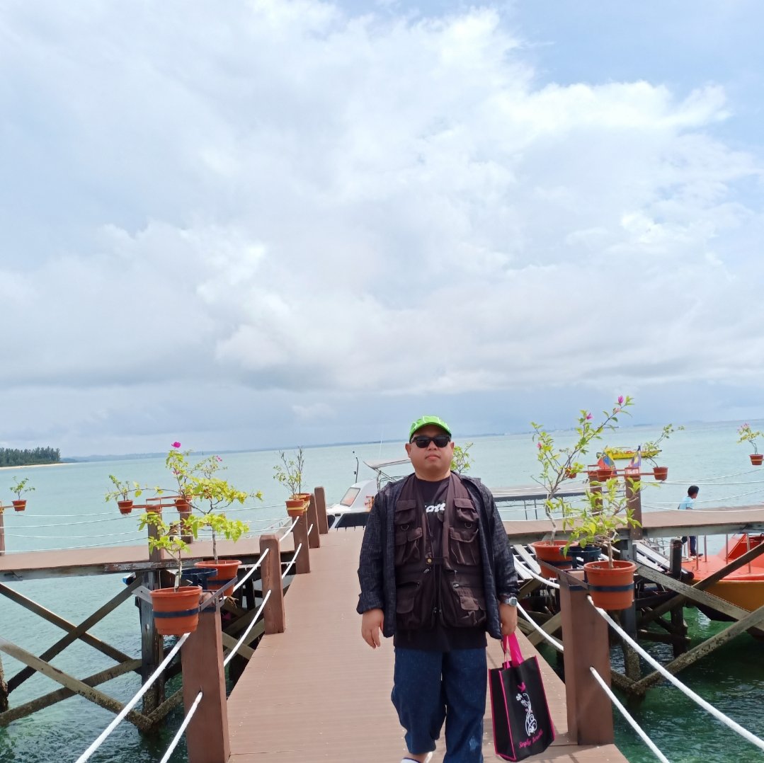 Perjalanan dengan bot laju ini melalui celah-celah kapal besar yang berlabuh dipantau Labuan. Terdapat banyak kapal-kapal yang berlabuh dan ada yang menunggu untuk pembikan dilimbungan. Dilaluan seterusnya ada pusat penapisan minak Petronas dan juga depo simpanan minyak serta station membekal minya kepada kapal-kapal yang ada. Apa yang difahamkan banyak kapal-kal=pal besar berlabuh di Labuan kerana caj yang murah, keselamatan yang tinggi dan juga kedudukannya yang strategik di Laut Cina Selatan. Apa yang lebih menarik penulis blog dimana terdapat 3-5 buah kapal pengerusi minyak (Oil Rigg Explorer) milik beberapa Syarikat Oil and Gas yang berlabuh disepanjang laut menuju kepulau ini. Dikatakan pada masa ini ia hanya berlabuh sahaja dan tidak menjalankan carigali minyak sebab industri OnG ini asih merudum diseluruh dunia tidak seperti beberapa tahun dahulu dimana Labuan dipenuhi dengan ‘orang minyak’ Memang unik bagaimana pulau yang dahulu amat sibuk kini semakin sunyi apabila kurang petugas pesisir pantai dengan minyak ini berkurangan. Setibanya penulis di pulau ini menaiki jeti kukuh yang baru dibna dengan lantainya dari bahan binaan plastik (Sila lihat foto disebelah). Jeti ini roboh setahun setengah lepas akibat taufan melanda dengan kuat. Jalankaki selama 10 minit sudah sampai pesisir pantai dan rumah tumpangan.
