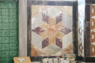 Ketika saya menghampiri mimbar Salahuddin di al-Aqsa ini, saya mengerutkan dahi. Kenapa di mimbar ini ada bintang enam? lambing negara Israel.
