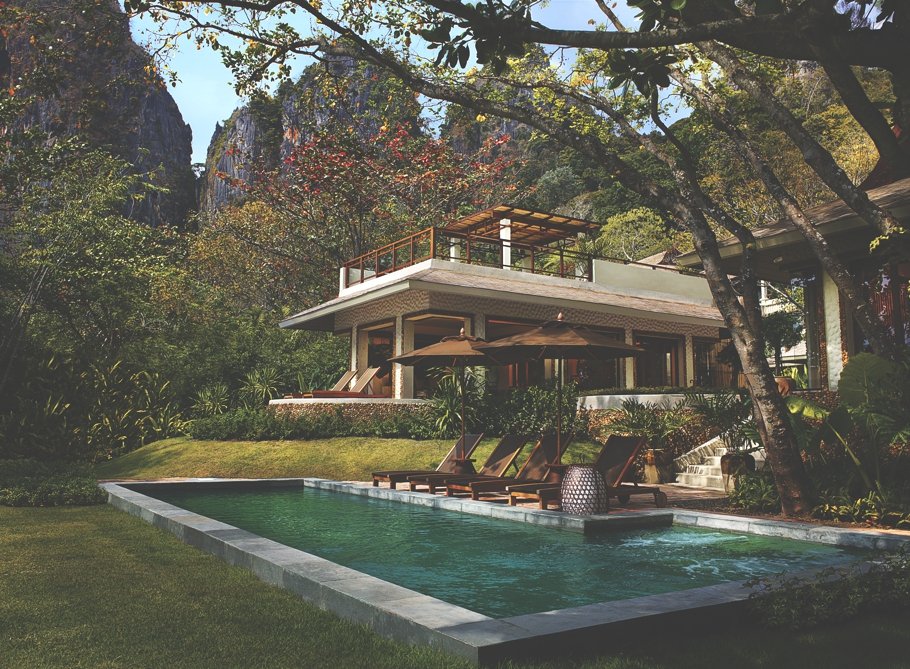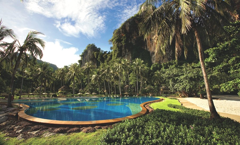A true paradise on Earth, the lavish Rayavadee resort awaits its guests in the heart of the luxuriant Phranang Peninsula in the Andaman Sea. It is set on the edge of Krabi province’s National Marine Park, occupying 26 acres of tropical coconut groves. The property includes 98 lovely two-story pavilions with spacious interiors and tasteful decors, plus 4 stunning beachfront villas hidden among tropical gardens.
