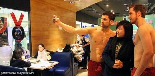 Walaupun para lelaki tersebut tidak boleh berbahasa Cina, dengan pesona dan tubuh yang Athletic, mereka pasti boleh menarik para calon pelanggan wanita dalam satu kedipan di sana.