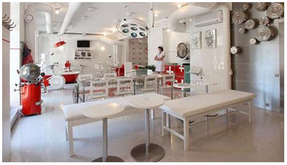 Hidangan boleh dimakan di dalam ruang bertemakan bilik pembedahan atau kerusi doktor gigi. Malah, restoran berkenaan turut menyediakan ruang makan menyerupai bilik pemeriksaan ginekologi
