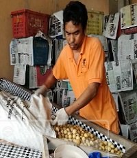 Dalam pada itu penulis blog memang pernah beberapa kali melawat kawasan penanaman duku di Terengganu dimana mendapati faktur penjagaan pokok amat penting. Ini kerana buah duku berkualiti hanya diperolehi jika pokok dijaga dengan baik dan mampu berhasil setiap tahun (Sila lihat foto disebelah). Apa yang Encik Alias alami dimana dia pernah melihat bagaimana kesukaran pekebun untuk pasarkan duku pada peringkat awal menjadi peraih buah duku tetapi berjaya mengorak langkah untuk jadi pengumpul dulu dengan beli duku daripada petani disini dan kemudiannya jual kembali di pasaran. Sejak awal dahulu beliau menjadikan rumah sendiri dikampong ini untuk ianya dijadikan pusat pengumpulan duku. Apabila tiba saja musim duku, orang kampung akan datang hantar jual ke sini bukan sahaja penduduk dari kampung dalam Mukim Tersat tetapi juga kelokasi lain seprti di Hulu Berang. Sama ada kuantiti tersebuut adalah sedikit atau banyak biasanya beliau akan membeli semua dari petani. Kemudian duku yang dibeli akan di hantar ke pusat pengumpulan dimana ia akan melalui proses penggredan terlebih dahulu sebelum dipasarkan. Kini secara purata sehari antara 6,000 – 7,000 kilogram duku dihantar dan dijual orang kampung ke rumah beliau. Ada yang datang membawa buah duku dengan keenderaan seperti kereta pacuan empat roda, motosikal dan ada juga berjalan kaki sambil memikul guni berisi duku.