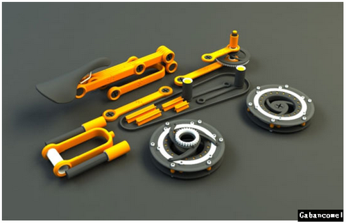 Roda basikal ini terdiri oleh enam modul, masing-masing mempunyai aci ganda pada sendi, ini membolehkan roda untuk dilipat dan menjadi lebih kecil, jari-jari dimasukkan dalam struktur bahagian dalam roda, apabila anda membuka sistemnya, jari-jari berputar pada pusat mekanik dimana di-attach pada tengah roda.