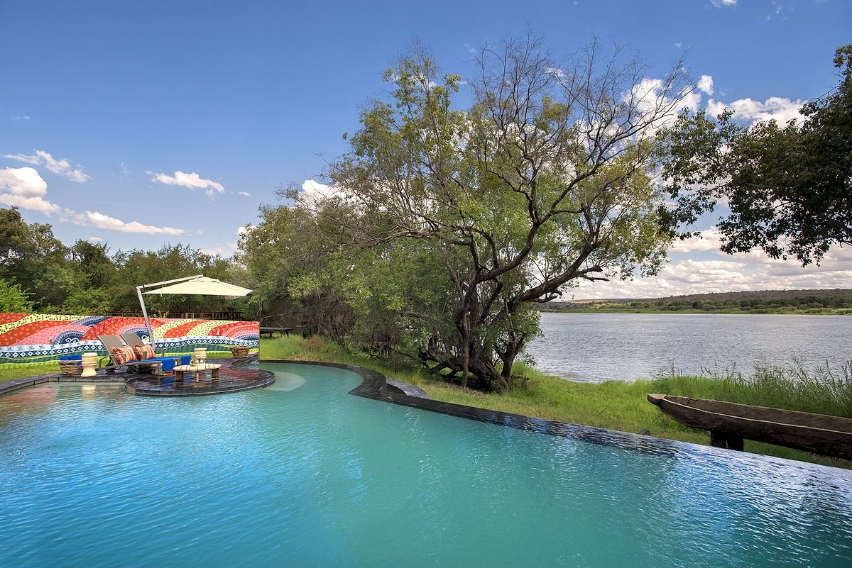 In addition to its 10 gorgeous thatched suites complete with private decks, River Lodge is brimming with outstanding amenities. There’s a striking restaurant and a beautiful swimming pool, but also a private library, wine cellar, and helicopter pad.