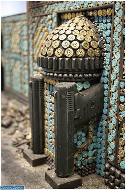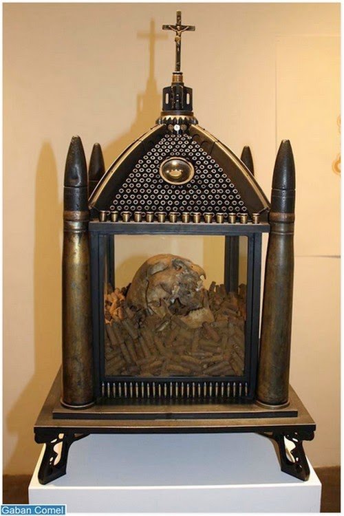 Al Farrow telah mencipta “reliquaries” mempunyai koleksi tempat ibadat diperbuat sepenuhnya daripada peluru dan senjata api. Potongan peluru, senjata api dan bahan -bahan berbahaya disatukan untuk membina model-model rumit seperti kuil, gereja dan masjid.