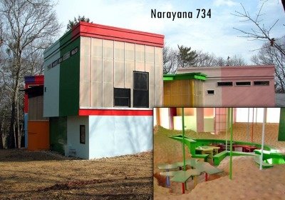 Rumah aneh ini dibangun untuk anda rasakan tinggal di dalam tempat kerja seni. Dari daratan nya yang naik turun seperti naik turun gunung, sampai warna nya yang norak sehingga membuat anda merasa sedang kerja dan tidak diberi kesempatan untuk rileks, memang seperti itulah tujuannya.