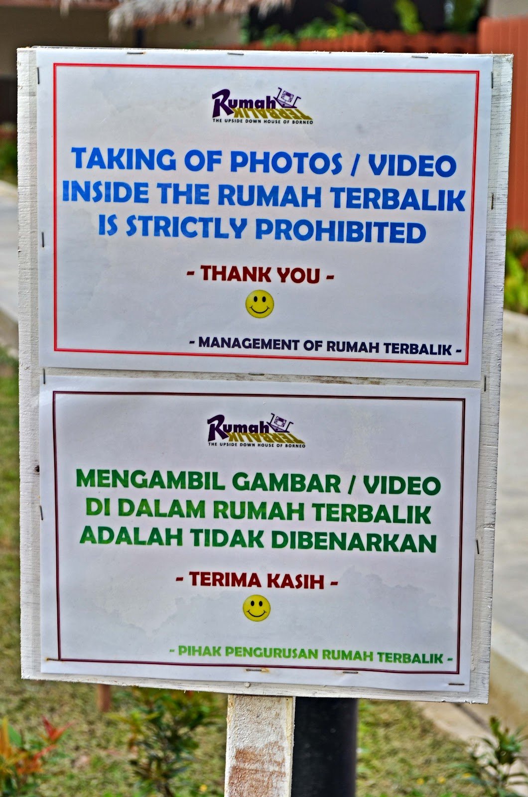 Lokasi rumah terbalik ni terletak di tamparuli.Kalau dari k.kinabalu nak menuju ke kundasang, mesti boleh nampak dari tepi jalan. Agak unik sebab satu-satunya rumah terbalik yang ada kat sabah. Masuk dalam rumah, segalanya terbalik..kita berjalan kat siling rumah. Segala TV, perabot, peralatan rumah berada dalam keadaan terbalik..maksudnya nak tengok TV kene pandang ke atas la..rasa agak pening2 juga kalau tak biasa. Paling syok kat bilik air..mangkuk tandas kat atas..agak2 nya la kalau rumah ni ada penghuni yg duduk..mcm mana dia nak buang air…:) kalau datang ke sabah, jemput la singgah kat rumah terbalik..bayaran masuk RM 10 utk seorang (dewasa) RM 5 untuk kanak-kanak..maaf gambar dlm rumah takde..sbb tuan rumah tak izinkan ambil gambar dalam rumah..-zul