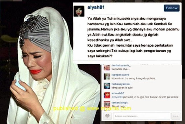Patutlah laman sosial Penyanyi Alyah sejak kebelakangan ini kata-katanya kelihatan seperti sedih dan seperti mahu mengetengahkan sesuatu yang tersembunyi. Rupa-rupanya, ada benda besar yang mahu disampaikan oleh penyanyi itu.