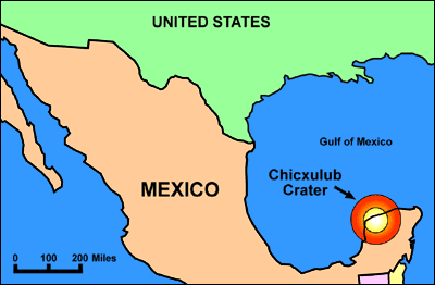 Chicxulub crater , kesan hentaman asteroid yang tak dapat dilihat oleh mata kasar