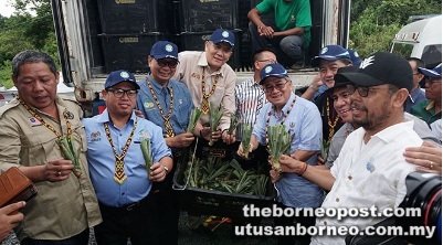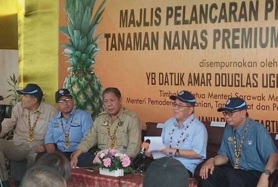 SERIKIN: Sarawak farmers will no longer be facing problem to plant premium export quality MD2 pineapple soon as the government has resolved the seedling shortage issue. Deputy Chief Minister Datuk Amar Douglas Uggah Embas told the media here yesterday that industry players are now allowed to bring in the suckers as the government has reviewed its policy on the matter. �For Sarawak we have resolved the issue. Initially we cannot bring in the suckers, but now we can. Our strategy will be to look for farmers who can produce planting materials for the next one or two years,� Uggah told reporters when launching a pilot Premium Pineapple Farm at Kampung Padang Pan, near here. Earlier in his speech, Uggah who is also Minister of Modernisation of Agriculture, Native Land and Regional Development revealed that MD2 pineapple farmers will be able to earn up to RM5,000 per month. Uggah told the audience that he was very surprised to see pineapples being planted at such a steep gradient via the project and praised Deputy Minister of Agriculture and Agro-based Industry Datuk Anthony Nogeh for taking such a brave approach in MOA effort to boost rural farmers� income. �This pioneer premium pineapple project will determine the future direction of Sarawak pineapple industry. For a start the government will plant four hectares of land with an allocation of RM300,000 – and this pilot farm will become as a nursery to further develop a total area of 129 hectares. �In the past, pineapples are linked to peat soil but today this project shows us that it can be planted in hilly area on mass scale, this definitely will increase the acreage of land feasible for pineapple projects,� Uggah added.