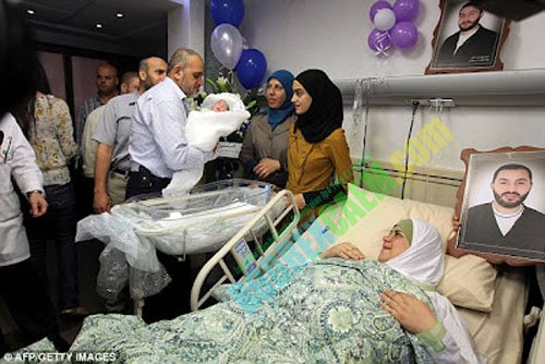 Dallal Ziben (32), melahirkan bayi yang diberinama Muhannad, setelah melakukan inseminasi buatan dari suaminya Ammar (37), yang saat ini menjalani hukuman seumur hidup di sebuah penjara Israel.