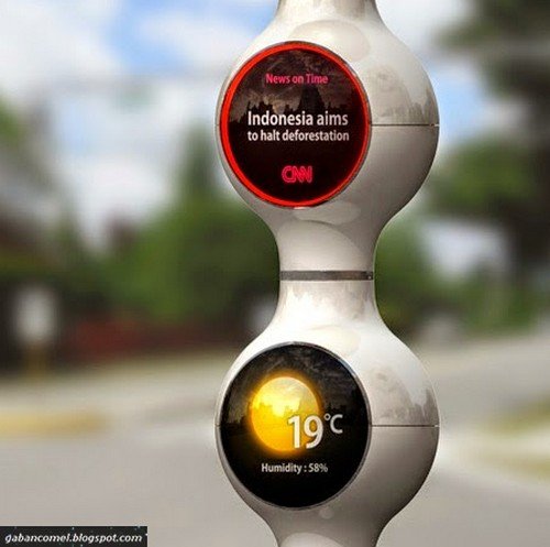 Lampu Isyarat ini menyala dengan tenaga solar. Menariknya, lampu ini mampu menunjukkan suhu udara, serta dapat memaparkan berita bagi para pengguna jalan.