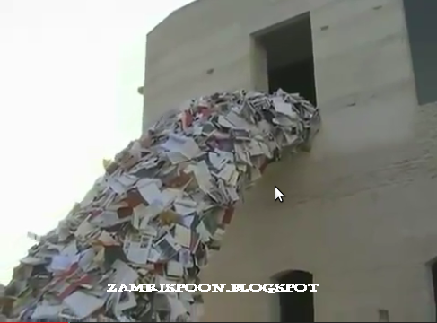 Mungkin buat para ulat buku, akan sangat sayang melihat banyak buku yang terbuang. Namun buku-buku ini semua sudah tak terpakai lagi . Untuk memberikan kesan yang lebih meyakinkan, Alicia ‘memuntahkan’ buku-buku itu dari tingkap.