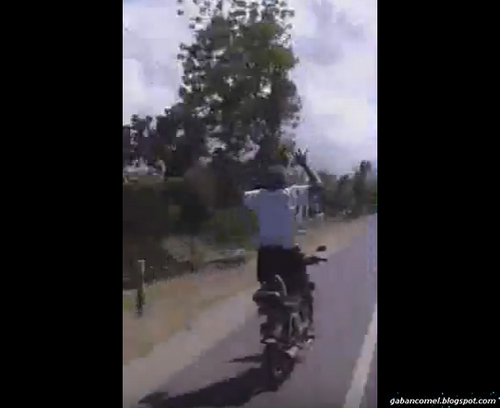 Datuk tersebut beraksi di atas motor yang sedang bergerak di jalan raya tanpa memegang kemudi dan duduk menyimpang. Jom saksikan video berikut dibawah: