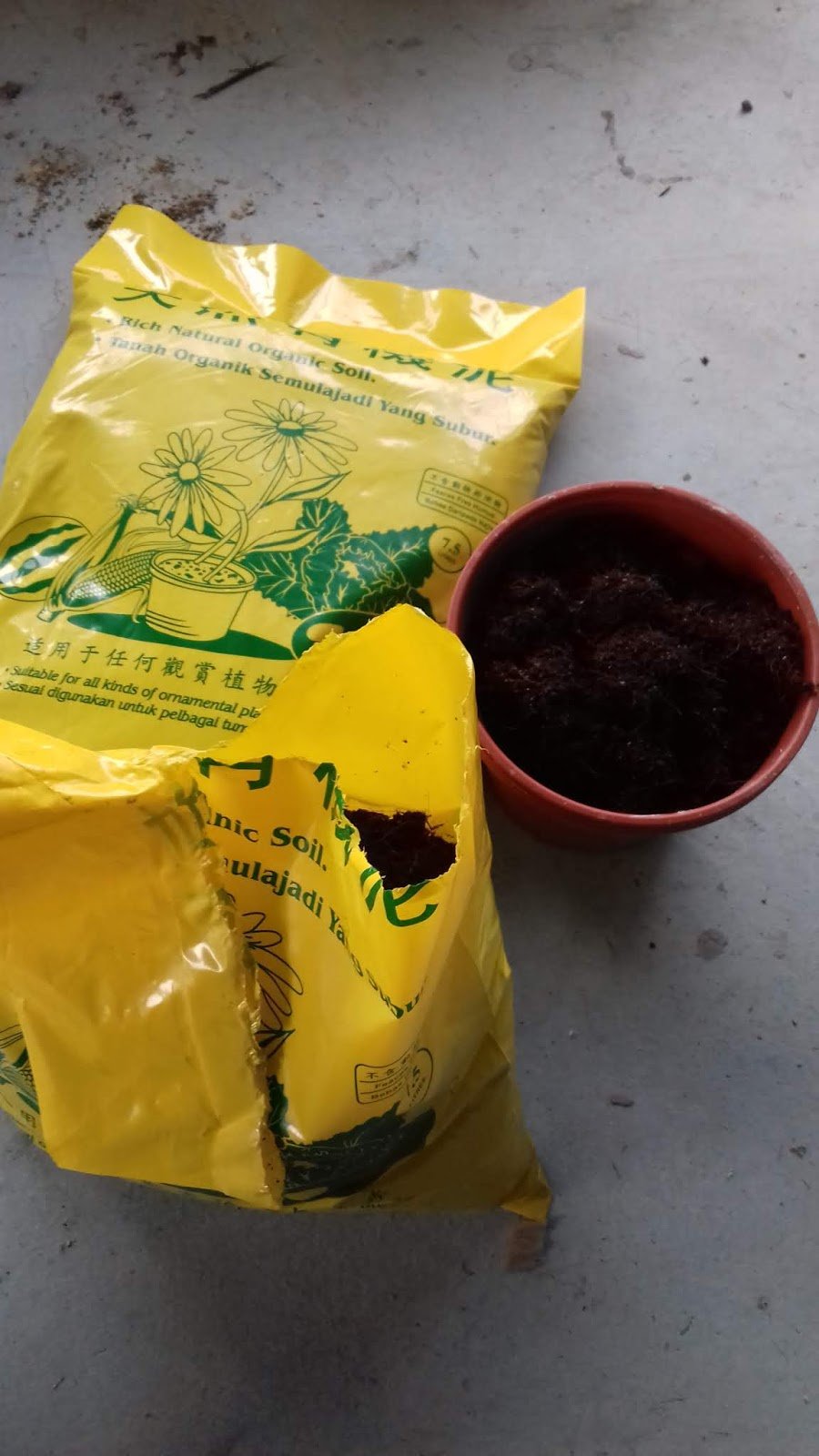 Serbuk / habuk sabut kelapa aka coco peat di beli dengan tujuan utama untuk percubaan mengetut pokok mangga di halaman rumah.