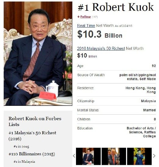Pengasas Kuok Group berusia 92 tahun itu masih mengekalkan kedudukannya sebagai orang paling kaya Malaysia meskipun banyak aset individu lain di Malaysia mengalami penyusutan sejak beberapa tahun kebelakangan ini.
