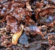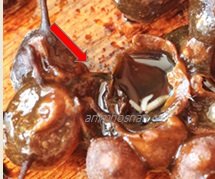 6. Terdapat larva BSF dalam kantung madu semasa dibuat pemeriksaan.