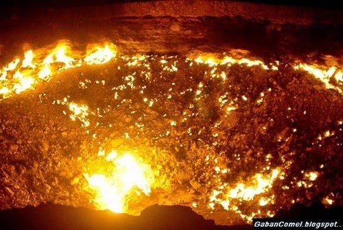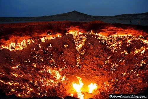 “Pit” begitulah sebutan untuk pintu neraka ini terletak di dalam bekas sebuah kawasan pemprosesan sumber gas , yang kemudian runtuh pada tahun 1971. Bimbang bahawa sejumlah besar gas metana boleh dipancarkan dari lokasi ini dan membahayakan bandar terdekat, para saintis membuat keputusan untuk membakar.