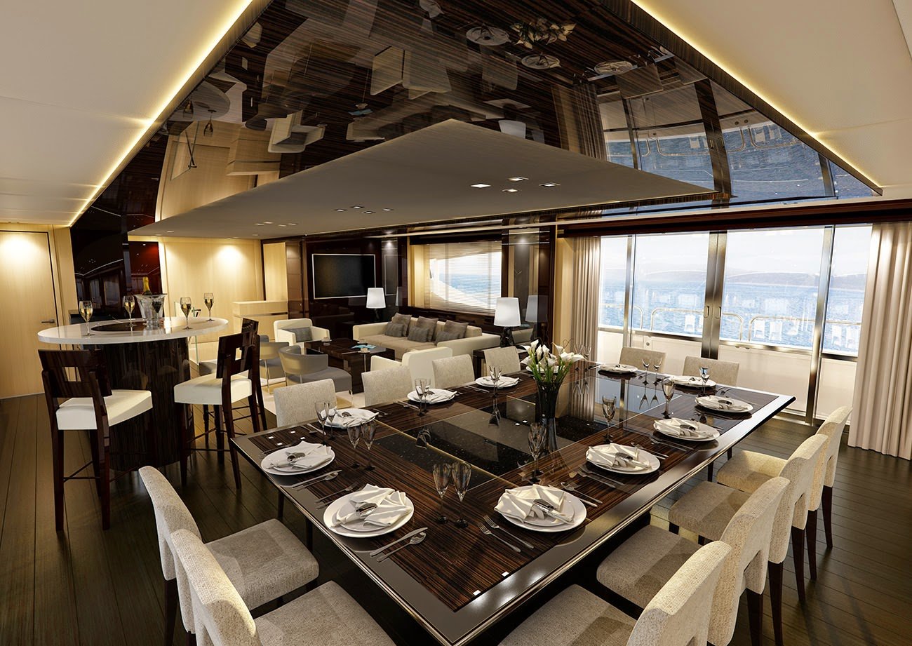 The 155 Yacht also includes a formal dining area with side patio doors, balconies for uninterrupted sea views while dining and a fully equipped commercial galley.