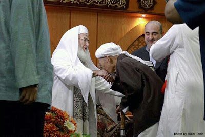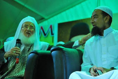 | Ust Azhar duduk bersebelah dengan Syeikh Ali al-Shobuni. Di Malaysia Ust Azhar Idrus tidak terlepas oleh kata-kata kesat golongan SYIAH MELAYU…Ust Azhar digelar bapa pengharaman |