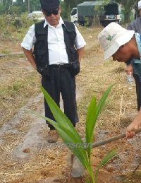 Tinjauan penulis diladang mendapati terdapat beberapa teguran yang diberikan kepada En James dan Pengurus ladang Encik Salehudin. Pertama adalah terdapat beberapa anakbenih yang terlebih umur (berkemungkinan umur hampir setahun) yang ditanam dimana ianya kurang sesuai dilakukan. Jarak tanaman kelapa pandan juga amat rapat sekitar 13- 15 kaki berbanding dengan syor dalam pakej amalan sekitar 18-20 kaki (6m x 6m). Encik James nyatakan beliau menanam agak rapat kerana kawasan tersebut adalah kawasan berbukit dan teres dan masaalah kekurangan kepakaran tenagakerja semasa menanam kelapa. Bagaimana pun beliau ucapkan terimakasih diatas terguran tersebut dan akan cuba membetulkannya. Apa yang penulis kurang puashati dalam penanman benih kelapa adalah kerana ia menanam terlalu hampur dengan tebing teres. Ada yang jaraknya hanya 1 kaki sahaja dengan tebing teres yang curam dan ini adalah amalan yang tidak betul. Sepatutnya anakpokok kelapa ditanam ditengah-tengah teres atau pun hampir dengan bahagian dalam teres. Dakwanya memang dirancang menanam dihujung teres untuk membolehkan kenderaan atau motorsikar rodatiga menuai hasil kelak kerana kawasan teres perlukan kemudahan semasa menuai. Bagaimana pun En James akan mengarahkan pengurus ladang mengalihkan anak pokok yang terlalu hampir dengan tebing diatas teguran penulis. Beliau pada keseluruhannya amat gembira mendapat agronomist yang mampu menegur amalan agronomi diestetnya walau pun secara kebetulan melalui kawasan ladangnya. Dakwanya beliau juga ada menanam dikawasan lain seluas 250 ekar kelapa dengan varieti kelapa Sungai Gulang-Gulang (CN16) yang dibeli daripada En Osman dari Sabak Bernam. Beliau juga ada menanam Kelapa Matag di lokasi tersebut yang berumur antara 1-2 tahun. Beliau percaya tanaman kelapa memang mempunyai masa depan yang baik dimasa hadapan. Dakwanya beliau membeli benih Matag daripada UP dengan harga RM20.00 sepokok. Bagaimana pun penulis blog agak khuatir jika benih tersebut adalah benih Matag F2 yang dibeli daripada pihak pembekal yang membeli buah kelapa F2 atau kontraktor pemungut buah yang disemai oleh usahawan nurseri lain. Kawasan yang penulis lawati ini kebanyakkan ditanam kelapa renek jenis pandan tempatan dan benih kelapa renek dripada Vietnam. Penulis akan ingin terus memantau penanaman kelapa dikawasan berbukit ini sehingga ia berbuah kelak. Semuga tulisan ini memberi perkongsian ilemu dengan a=nda pembaca blog anim agro technology. Wasallam!!!…