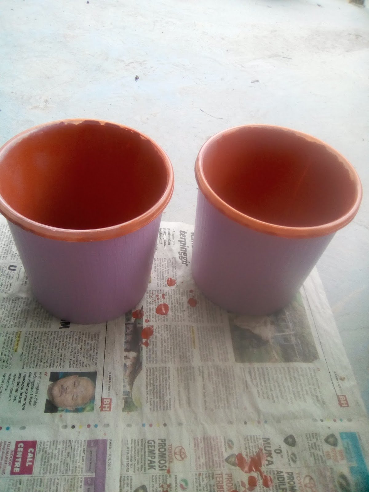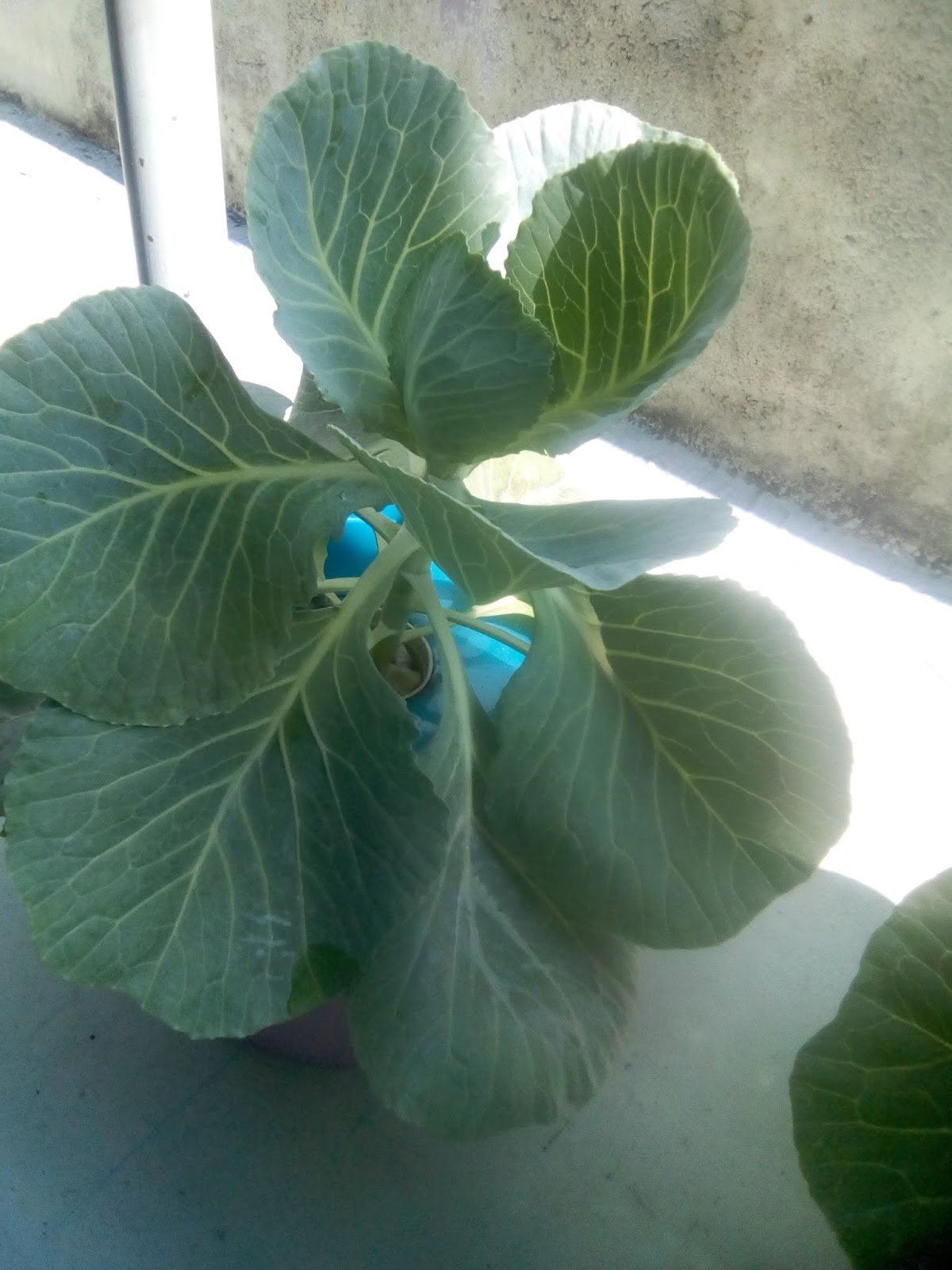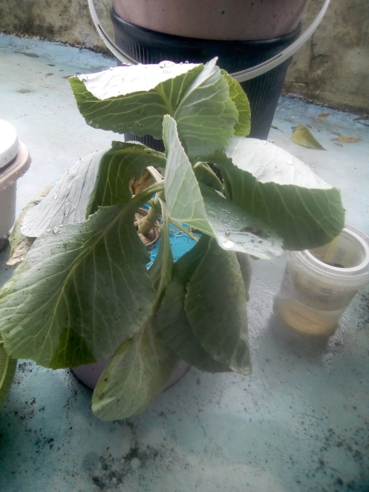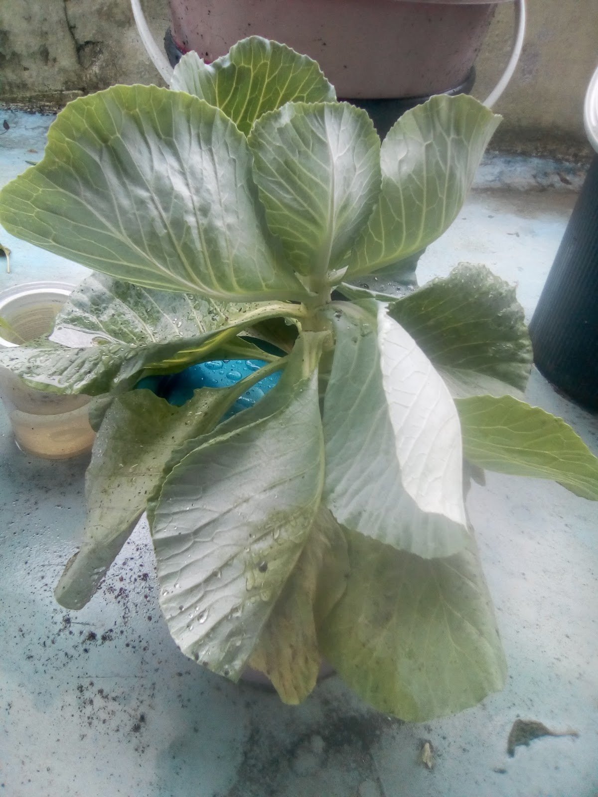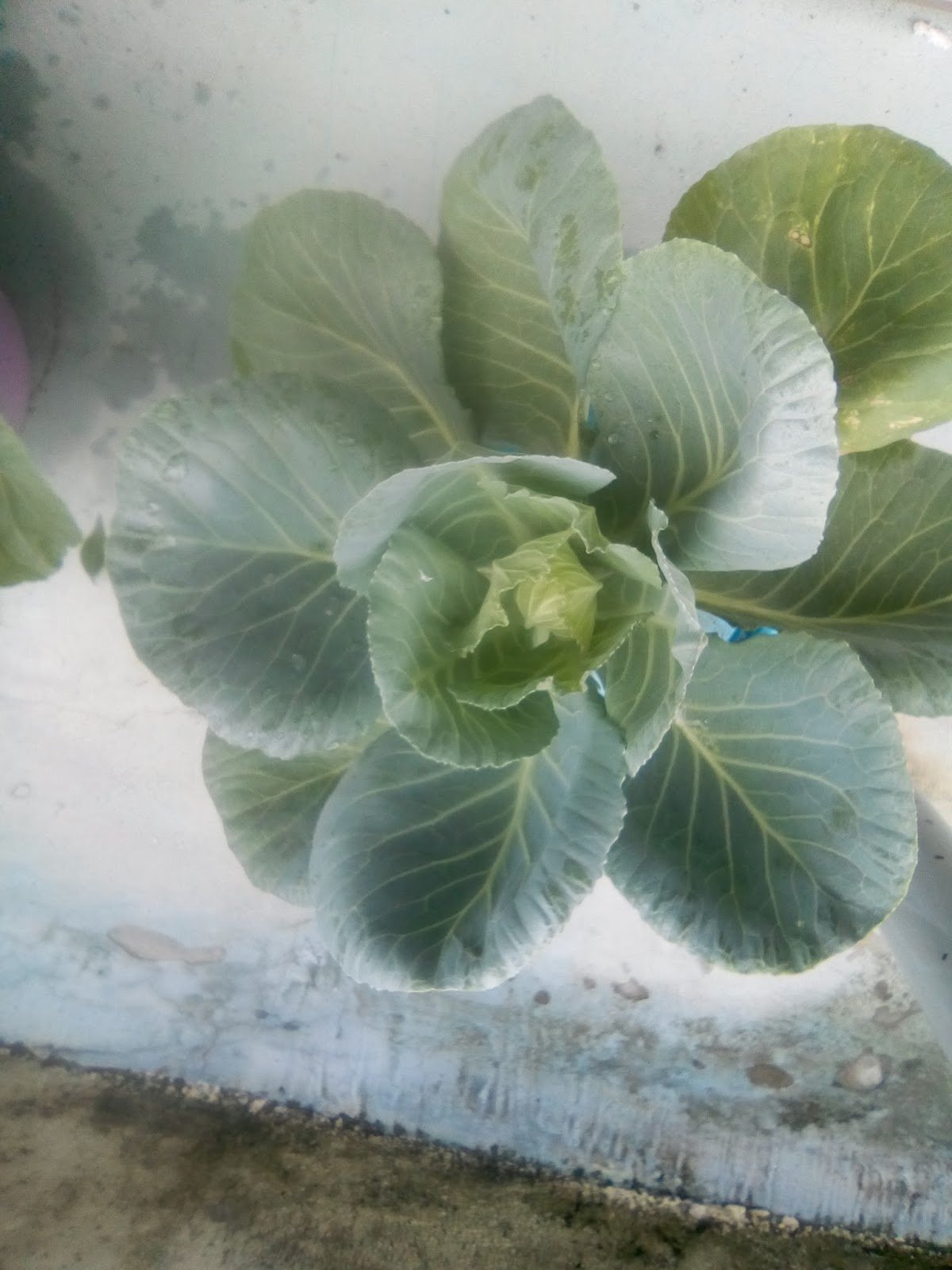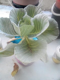 Percubaan menanam 2 pokok kobis hidroponik menggunakan bekas yang di cat.